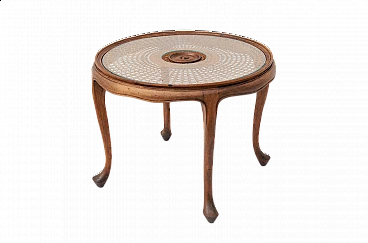 Tavolino da salotto in legno e paglia di Vienna, anni '30